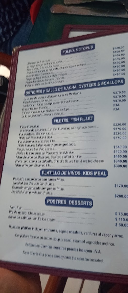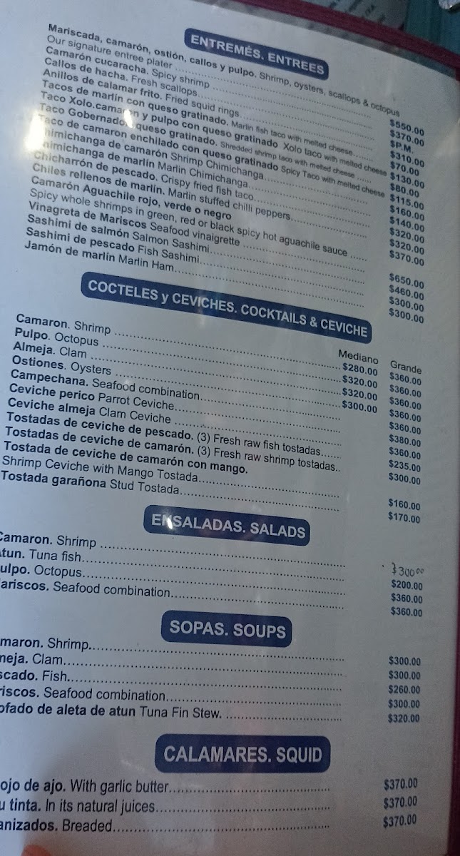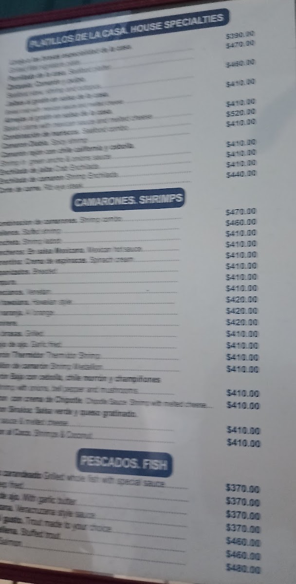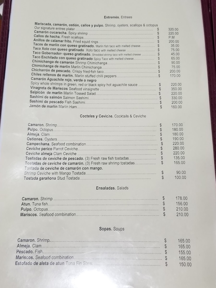 The menu features a range of options that highlight the quality of the ocean’s bounty, such as grilled fish fillets, succulent shrimp prepared in garlic sauce, and classic preparations like fried fish or pescado zarandero. For those looking to share, there are generous seafood combos along with fresh oysters available raw or dressed in variations like Rockefeller style. Land-based options like ribeye steak also round out the offerings, providing a comfortable choice for mixed groups.